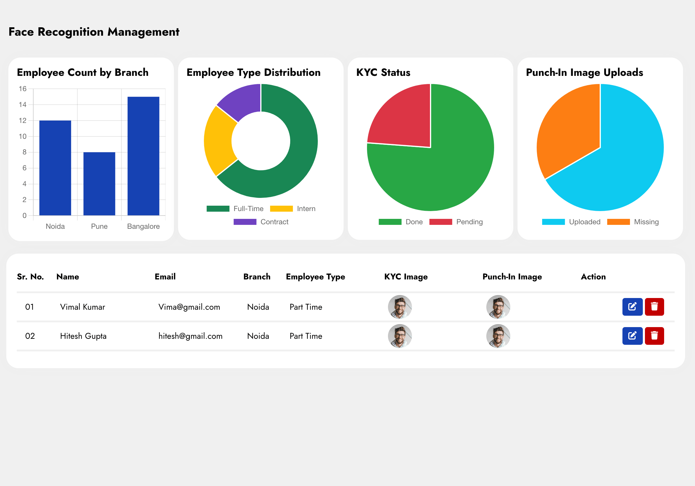 The Face Recognition feature in HRMS (Human Resource Management System) is designed to streamline and secure the attendance process by utilizing advanced biometric technology. This feature ensures accurate and efficient employee punch-ins, enhancing both security and convenience.