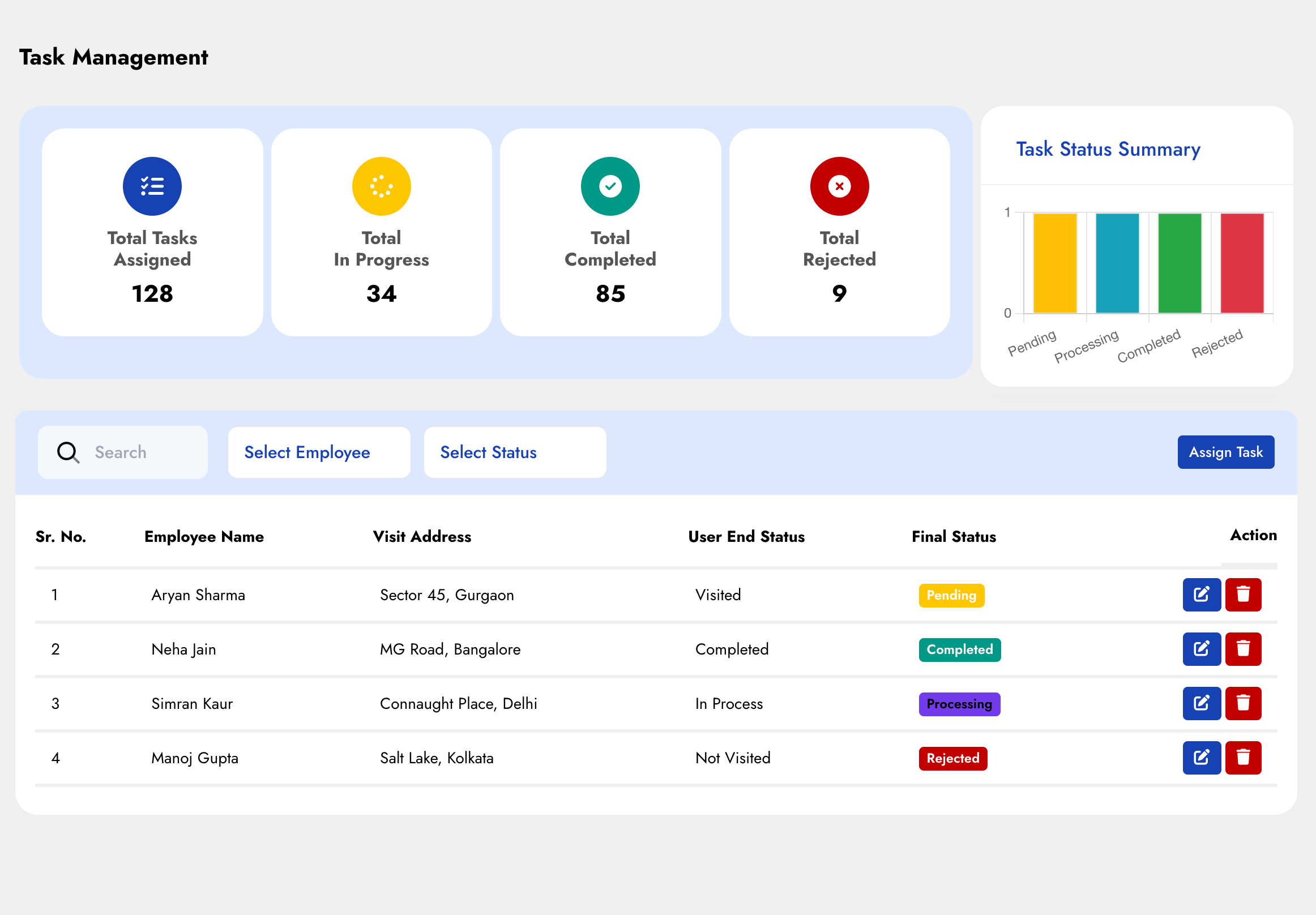 Employees can update the status of their tasks as they progress, providing managers with real-time insights into the completion status.